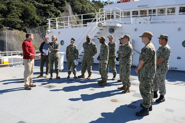 YOKOSUKA, Japan -- Staff assigned to Commander, U.S. 7th Fleet’s Meteorology and Oceanography cell and from Submarine Group (CSG) 7/Task Force (CTF) 74 toured Military Sealift Command’s (MSC) Pathfinder-class oceanographic survey ship USNS Mary Sears (T-AGS 65) in Yokosuka, Japan, October 20, 2022. Pathfinder-class oceanographic survey ships are crewed by commercial mariners under contract by Military Sealift Command. MSC’s oceanographic survey ship program includes six ships that perform acoustical, biological, physical and geophysical surveys. “In order to succeed on land, in the air and sea, you have to know the environment," said Cmdr. Cassandra Sisti, U.S. 7th Fleet Oceanographer. "We work together with our nation's best scientists at the Naval Oceanographic Office (NAVOCEANO), as well as our allies and partners, to deliver this battlespace awareness to our warfighters. This environmental team helps keep our sailors and ships safe and able to excel in their operations across the entire theater." Margaret Pike, senior NAVOCEANO representative, and Captain Scott Spears, the ship’s master, led the tours of the ship and fielded questions about the ship and its capabilities. “This was a great opportunity for us to meet the operators, and for them to see what our platform is capable of,” said Spears. “We pride ourselves on providing the warfighter with the best available information – bathymetric, hydrographic, oceanographic, geophysical and acoustic products and services– to aid in effective mission planning.” Oceanographic survey ships gather data that provides much of the military's information on the ocean environment. The collected data helps to improve technology in undersea warfare and enemy ship detection. The oceanographic and hydrographic survey ships' multi-beam, wide-angle precision sonar systems make it possible to continuously chart a broad strip of ocean floor. Survey ships have charted three-fourths of the world's coastlines, making it easier for navigators to find their way along both well-traveled and not-so-familiar shipping routes. These ships are capable of carrying 34-foot hydrographic survey launches (HSL) for data collection in coastal regions with depths between 10 and 600 meters and in deep water to 4,000 meters. Submarine Group 7 directs forward-deployed, combat capable forces across the full spectrum of undersea warfare throughout the Western Pacific, Indian Ocean, and Arabian Sea.