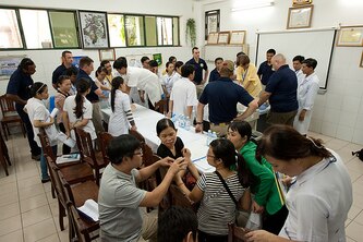 DA NANG, Vietnam (June 10, 2014) - Vietnamese medical personnel practice chest compressions after an advanced cardiac life support class, part of Pacific Partnership 2014, at Da Nang General Hospital. Pacific Partnership is in its ninth iteration and is the largest annual multilateral humanitarian assistance and disaster relief preparedness mission conducted in the Asia-Pacific region. (U.S. Navy photo by Chief Mass Communication Specialist Greg Badger)