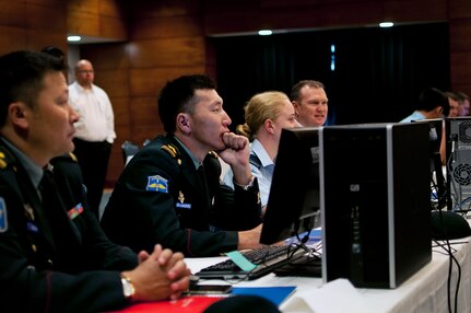 In this photo, participants of the command post exercise portion of the Pacific Airlift Rally gather for an opening speech on Joint Base Elmendorf-Richardson, Aug. 25. The Pacific Airlift Rally is a bi-annual, multinational military-airlift symposium for nations in the Indo-Pacific Region and is hosted by the Pacific Air Forces.