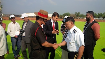 PANAJI, India (March 30, 2016) - Gen. Dennis L. Via, Army Materiel Command commander, meets with Indian army chief of staff General Dalbir Singh at the opening ceremony of India's Defexpo 2016.
