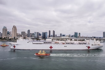 SAN DIEGO (May 11, 2016) The Military Sealift Command hospital ship USNS Mercy (T-AH 19) departs Naval Base San Diego in support of Pacific Partnership 2016. Pacific Partnership is in its 11th iteration and is the largest annual multilateral humanitarian assistance and disaster relief preparedness mission conducted in the Indo-Asia-Pacific region.