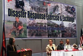 (Bottom left) Alaina B. Teplitz, U.S. Ambassador to Nepal, gives remarks during the opening ceromony at the 2016 Nepal Disaster Response Execise and Exchange (DREE), Kathmandu, Nepal, Sept. 20, 2016. The bi-lateral disaster exercise, focused on earthquake preparedness, is part of the enduring collaboration between the U.S. and Nepalese governments to prepare for natural disasters in the Indo-Asia-Pacific.
