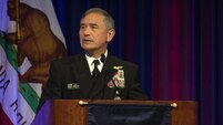 Navy Adm. Harry Harris Jr., commander of U.S. Pacific Command, speaks at the WEST 2017 naval conference and exposition in San Diego, Feb. 21, 2017.