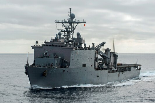 USS Comstock (LSD 45) file photo: Amphibious dock landing ship USS Comstock (LSD 45) operates off the coast of Southern California as part of the Makin Island Amphibious Readiness Group (ARG), Aug. 18, 2016. The Makin Island ARG is conducting Composite Training Unit Exercise in preparation for an upcoming deployment.