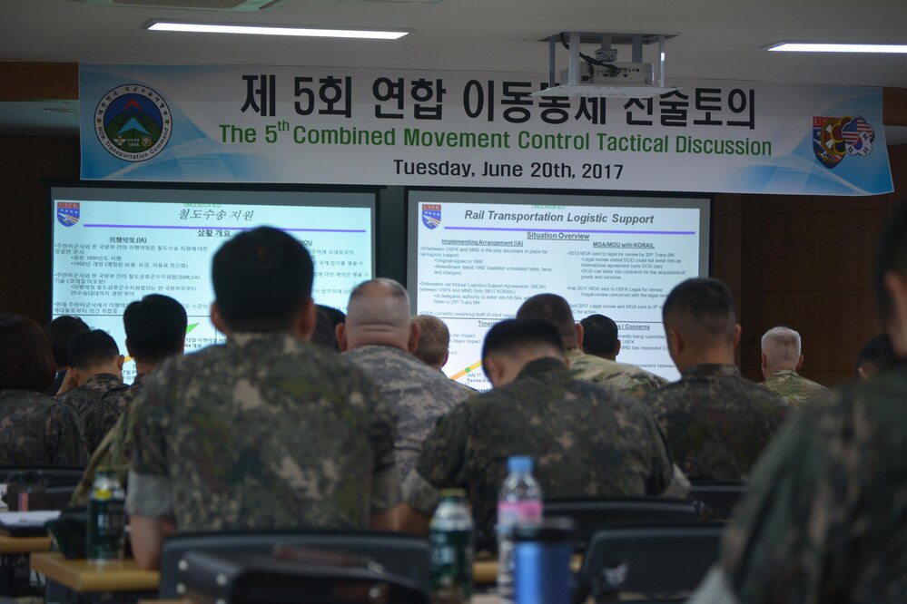 Senior logistics leaders from across the Korean Peninsula gathered with the Republic of Korean Transportation Command and Korea Railroad (KORAIL) representatives for the 5th Combined Movement Control Tactical Discussion at the KORAIL headquarters, June 20, 2017. Discussions focused on movement control ranging from the strategic to the tactical level.