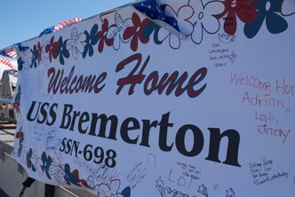 The Los Angeles-class fast-attack submarine USS Bremerton (SSN 698) returns to Joint Base Pearl Harbor-Hickam following a six-month Western Pacific deployment, April 6, 2018.