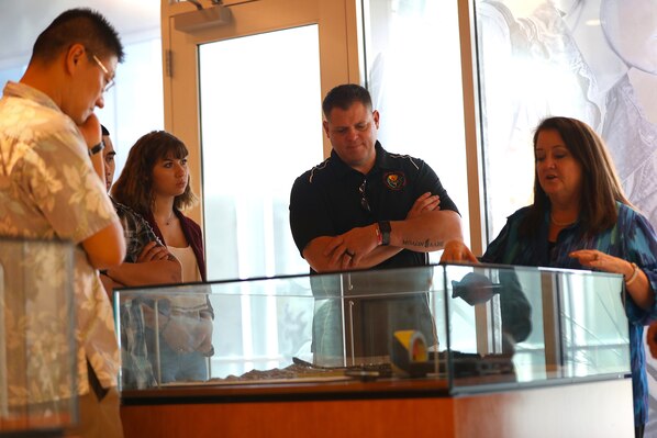 Linda A. Read, community relations officer, Defense POW/MIA Accounting Agency, explains the process of recovering fallen service members from past conflicts to chaplains assigned to the 25th Infantry Division March 29, 2018. The chaplains toured the DPAA in order to get a better understanding of the care and respect that goes into investigating, recovering, and identifying our lost heroes. (U.S. Army photo by Sgt. Ian Ives, 25th Sustainment Brigade Public Affairs /Released).