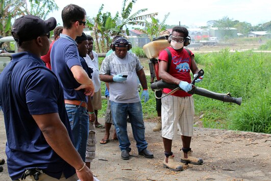 Members of Navy Environmental and Preventive Medicine Unit (NEPMU) 6) from Pearl Harbor train personnel from the Solomon Islands Ministry of Health during a vector control initiative mission. The entomologists and preventive medicine technician from NEPMU-6 also partnered with entomologists from the Australian Defence Force to increase interoperability.