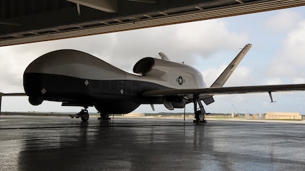 An MQ-4C Triton unmanned aircraft system (UAS) sits in a hangar at Andersen Air Force Base after arriving for a deployment as part of an early operational capability (EOC) to further develop the concept of operations and fleet learning associated with operating a high-altitude, long-endurance system in the maritime domain. Unmanned Patrol Squadron (VUP) 19, the first Triton UAS squadron, will operate and maintain two aircraft in Guam under Commander, Task Force (CTF) 72, the U.S. Navy's lead for patrol, reconnaissance and surveillance forces in U.S. 7th Fleet.