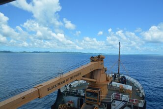 The crew of USCGC Sequoia (WLB 215) steams off Palau on June 1, 2020. The crew of Sequoia established ten new floating aids to navigation known as buoys and established or substantially rehabilitated 43 fixed aids to navigation in Palau’s main shipping channel. The U.S. Coast Guard, in partnership with U.S. Embassy Koror and with the support of the Department of the Interior, provided further aids-to-navigation infrastructure improvements in the waters of Koror, Palau in late May and early June.