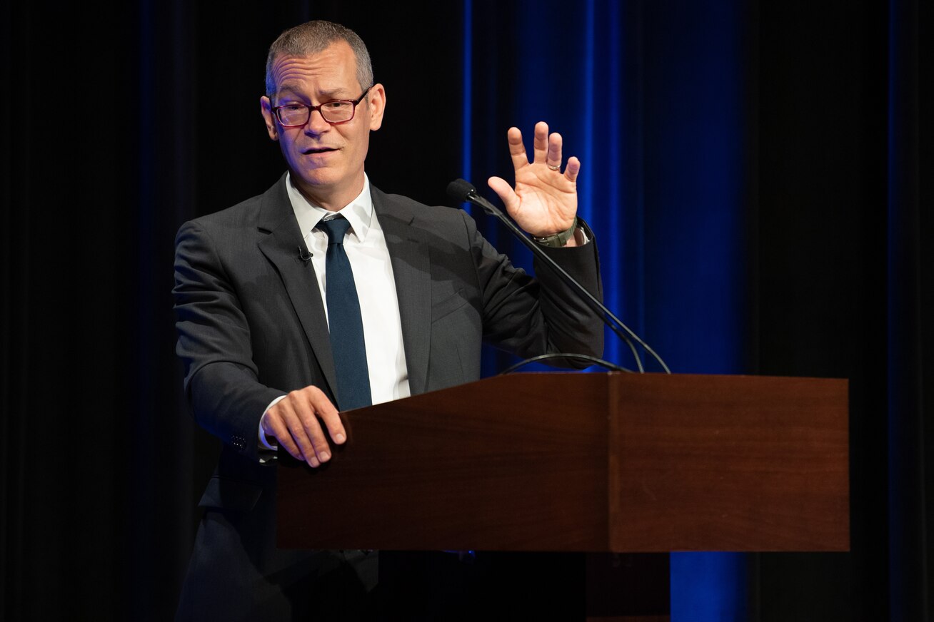 Colin Kahl, undersecretary of defense for policy, speaks at a policy town hall meeting to lay out his priorities in support of the Secretary of Defense’s priorities, May 26, 2021.