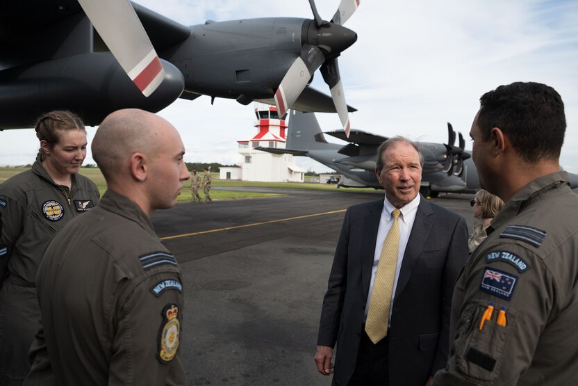 Before commencement of Exercise Nocturnal Reach, U.S. Ambassador Tom Udall visited RNZAF Base Auckland, to welcome U.S. Forces and thank NZDF for hosting their visit to New Zealand. Photo credits: U.S. State Department.
