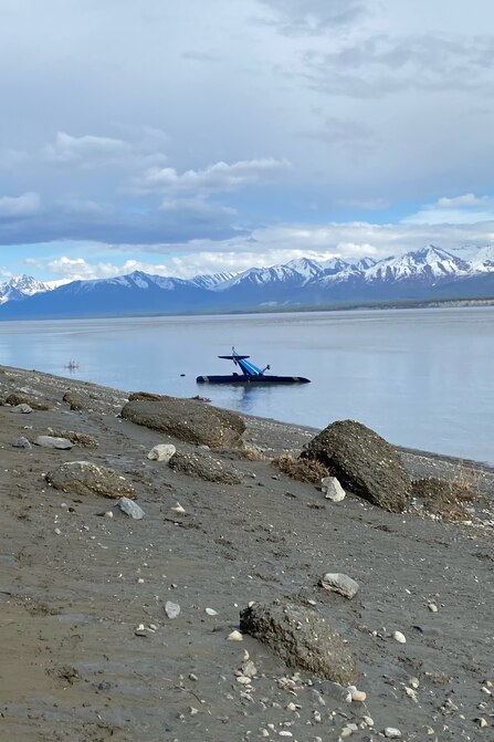 A Taylorcraft rests where it crashed May 16, 2022, near Goose Bay Airport, Alaska. Good Samaritans, including Alaska Air National Guard Staff Sgt. Steven Borcherding, 176th Maintenance Squadron, U.S. Air Force Staff Sgt. Kyle Lawrie, 3rd Maintenance Squadron, Alaska Army National Guard Spc. Zach Cherry, 1st Battalion, 207th Aviation Regiment, and Borcherding’s father, Steven Borcherding Sr., helped safely evacuate the aircraft’s two occupants from the beach during a rapidly rising tide.