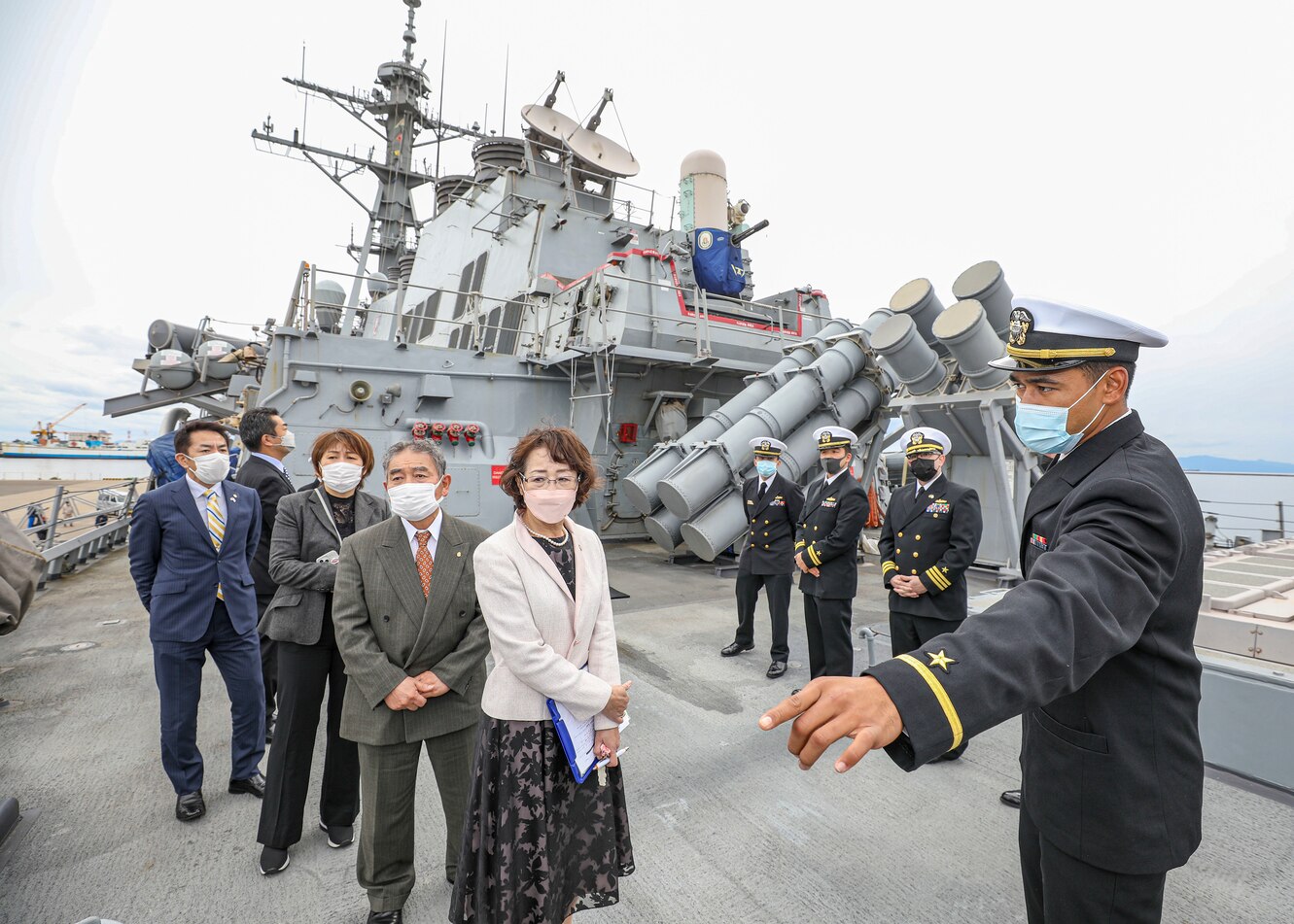 Members of the Hakodate America-Japan Society tour the aft missile deck aboard Arleigh Burke-class guided-missile destroyer USS Benfold (DDG 65) during the ship’s scheduled port visit, Oct. 7. Benfold is assigned to Commander, Task Force 71/Destroyer Squadron (DESRON) 15, the Navy’s largest forward-deployed DESRON and the U.S. 7th Fleet’s principal surface force.