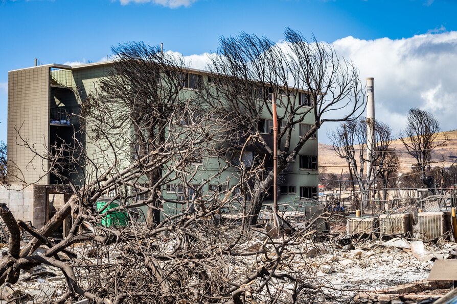 Damaged buildings and structures of Lahaina Town destroyed in the Maui wildfires in Lahaina, Maui, Hawaii, Aug. 15, 2023.