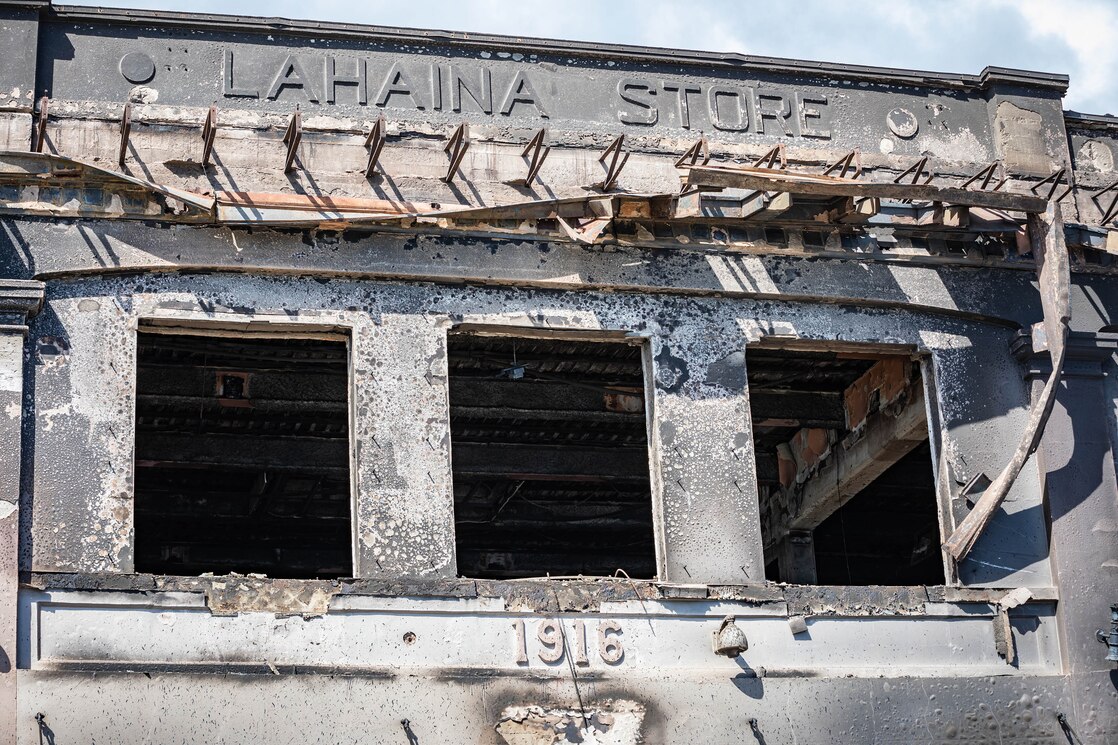 Damaged buildings and structures of Lahaina Town destroyed in the Maui wildfires in Lahaina, Maui, Hawaii, Aug. 15, 2023.