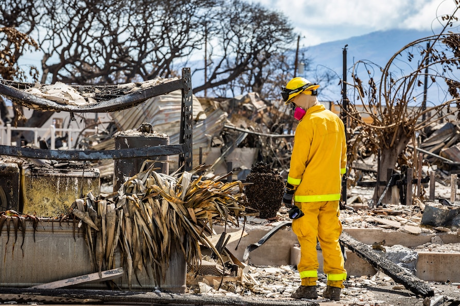 Combined Joint Task Force 50 search, rescue and recovery elements conduct search operations of areas damaged by wildfires in Lahaina, Maui, Hawaii, Aug. 15, 2023.