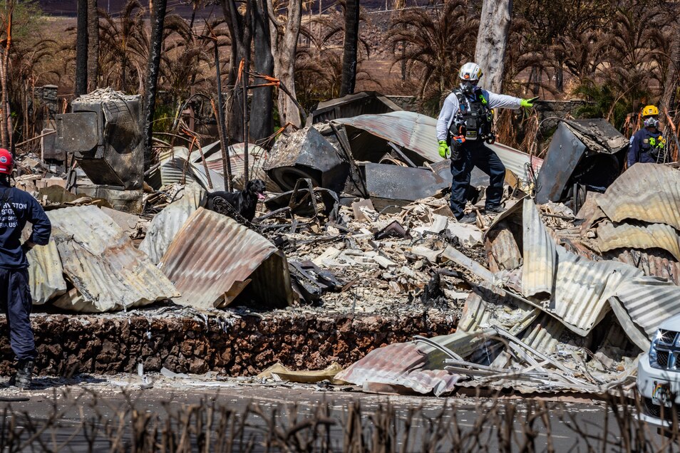 Combined Joint Task Force 50 search, rescue and recovery elements conduct search operations of areas damaged by wildfires in Lahaina, Maui, Hawaii, Aug. 15, 2023.
