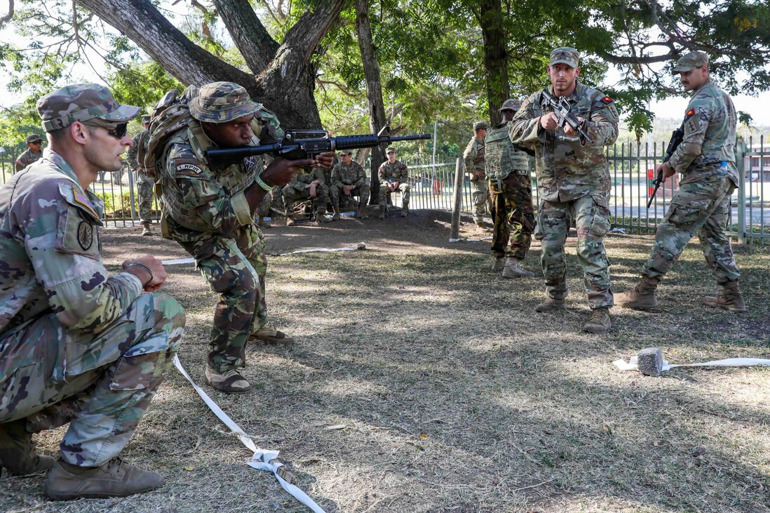 Soldiers with the Wisconsin Army National Guard’s 1st Squadron, 105th Cavalry Regiment, trained with soldiers of the 1st Royal Pacific Infantry Regiment, Papua New Guinea Defence Force, on room-clearing techniques as part of Exercise Tamiok Strike 2023 at Taruma Barracks, Port Moresby, Papua New Guinea Aug. 7. The two-week exercise was aimed at improving the interoperability of the PNGDF and U.S. forces.