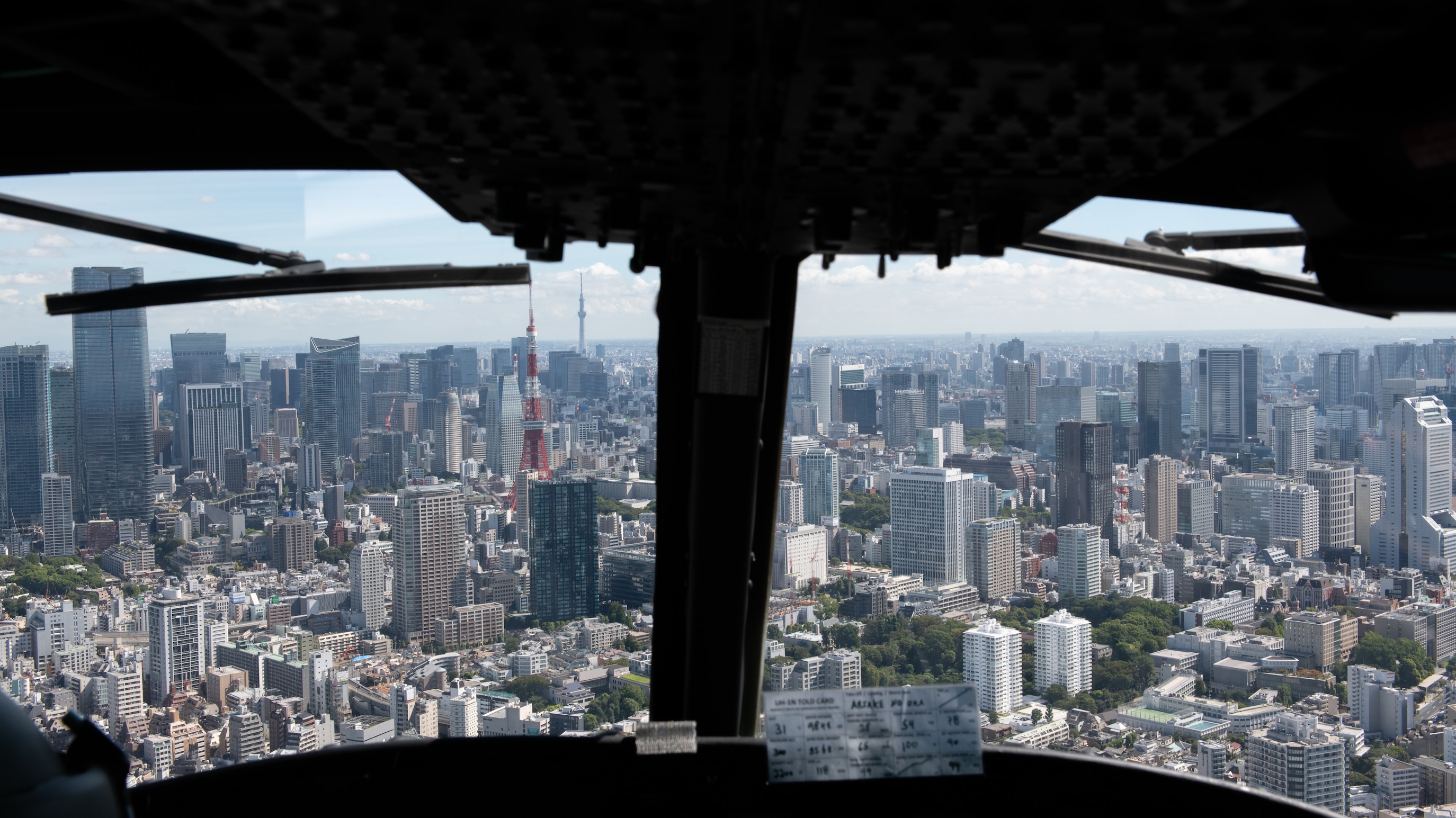A UH-1N Huey assigned to the 459th Airlift Squadron flies through Tokyo airspace during a disaster preparedness and response drill in Japan, Sept. 2, 2023. Disaster exercises are designed to ensure an organized personnel response as natural disasters are an ongoing threat to the Tokyo Metropolitan Area and Kanto Plains region. (U.S. Air Force photo by Staff Sgt. Taylor Slater)