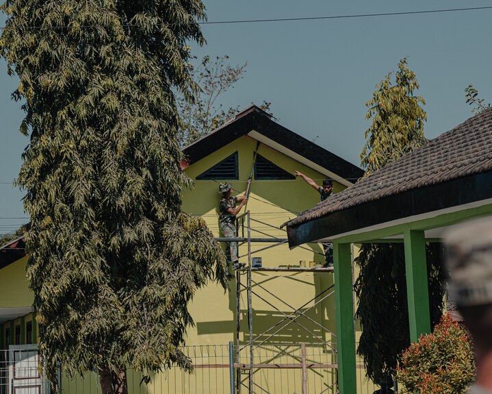 U.S. Army Reserve 479th Engineer Battalion, 926th Engineer Battalion, 412th Theater Engineer Command and Indonesian National Armed Forces Army 2nd Marine Engineer Battalion in constructing a school, during Super Garuda Shield 23 at 5th Marine Training Center (Puslatpur), Situbondo, Indonesia, 02 Sep. 2023. Service members are working on this project to help restore the school so that it will be fully functional for the local community. #SuperGarudaShield 2023 is an annual exercise that has significantly grown in scope and size since 2009. #SGS2023 is the second consecutive time this exercise has grown into a combined and #joint event, highlighting the 6 participating and 12 observing nations’ commitment to #partnership and a #freeandopenindopacific. (U.S. Army photo captured by Staff Sgt. Brenden Delgado)