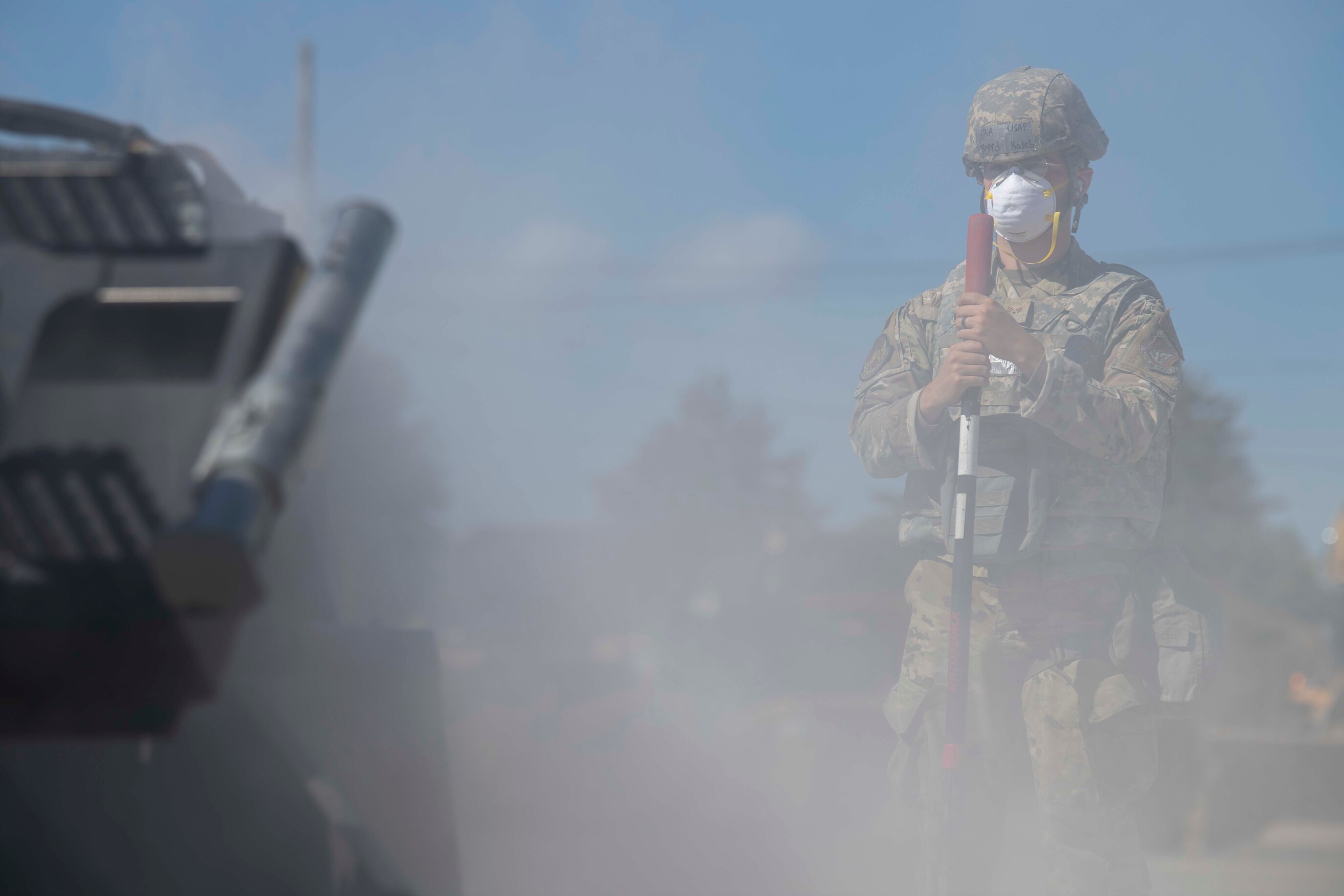 Senior Airman Kaleb Byrd, 374th Civil Engineer Squadron pavements and equipment journeyman, participates in Rapid Airfield Damage Repair training during exercise Beverly Morning 24-1 at Yokota Air Base, Japan, Oct. 22, 2023. Exercise Beverly Morning 24-1 is Yokota Air Base’s annual, full-scale readiness exercise designed to enhance crisis response and fortify resilience across the base. (U.S. Air Force photo by Airman 1st Class Samantha White)