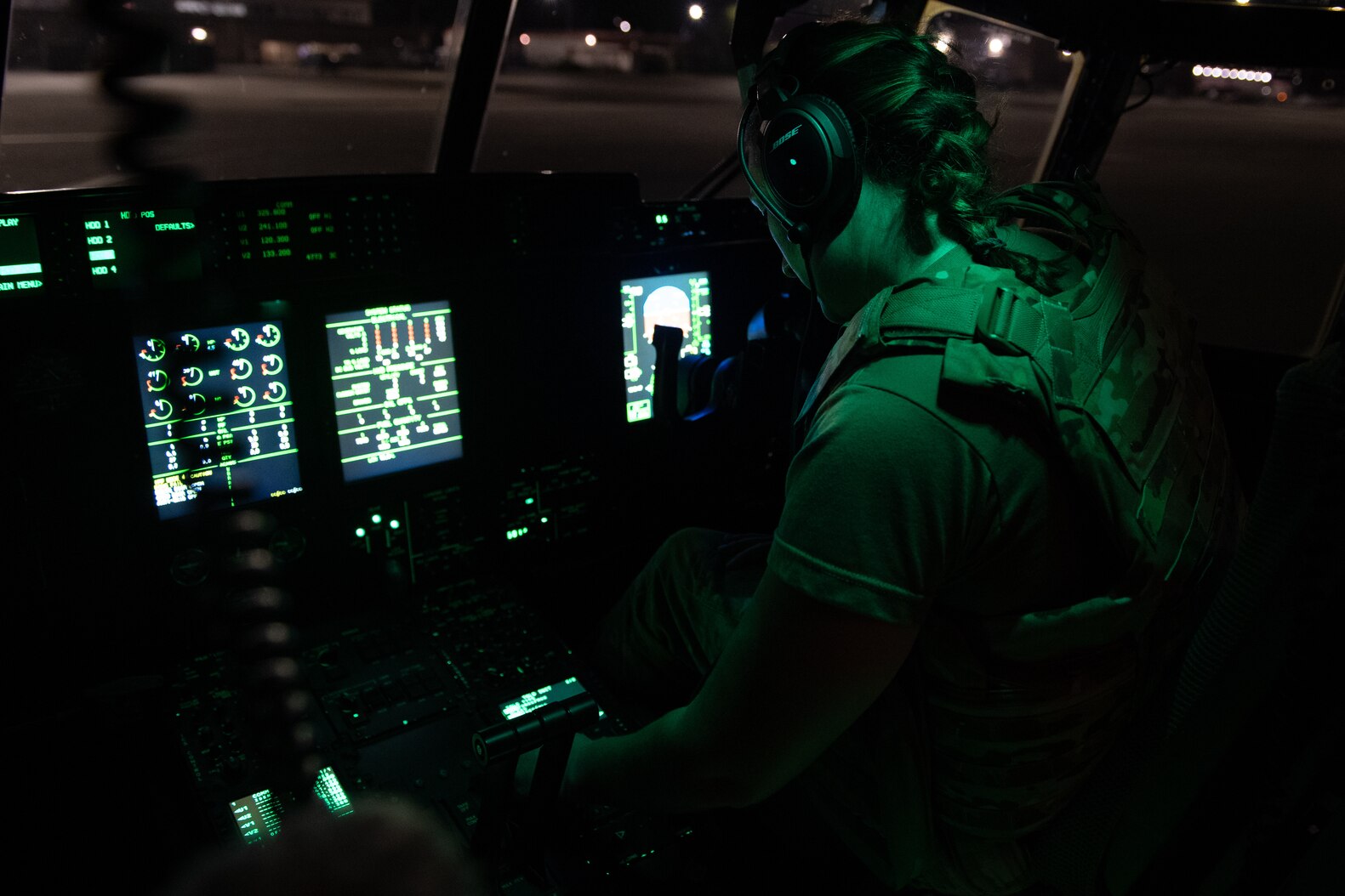 U.S. Air Force 1st Lt. Elizabeth Gilliam, 36th Airlift Squadron pilot, executes aircraft generation operations in support of Exercise Beverly Morning 24-1 at Yokota Air Base, Japan, Oct. 22, 2023. For the exercise, aircrew and maintenance Airmen executed a “Launch to Survive” to guarantee that Yokota's aircraft can be generated to depart the base at a moment's notice, effectively safeguarding valuable Air Force assets from potential harm.. (U.S. Air Force photo by Staff Sgt Taylor Slater)