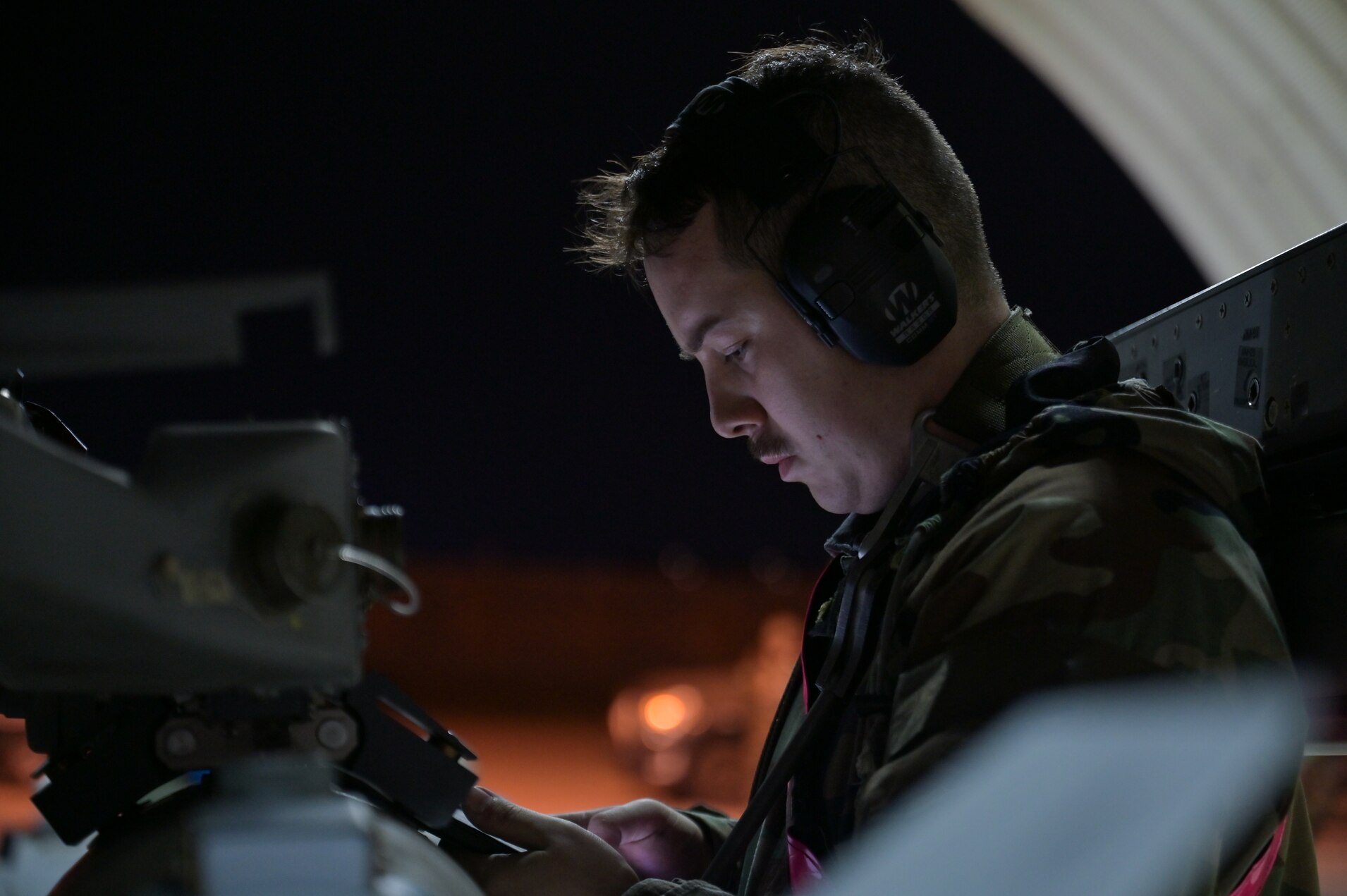 Staff Sgt. Ashton Alamo, 35th Fighter Generation Squadron weapons load crew member, reads the technical order before securing a munition to a U.S. Air Force F-16 Fighting Falcon during Vigilant Defense 24 at Kunsan Air Base, Republic of Korea, Nov. 2, 2023. Combined training and exercises are defensive in nature, intended to build combat readiness and ensure we are ready to “Fight Tonight.’ (U.S. Air Force photo by Tech. Sgt. Emili Koonce)