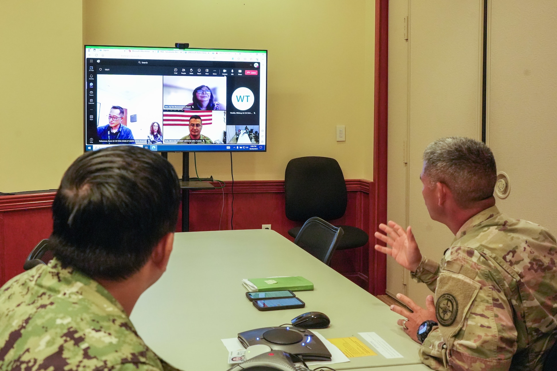 Joint Task Force-Red Hill (JTF-RH) Strategic Engagement Director, U.S. Army Brig. Gen. Lance Okamura, met with Defense Health Agency personnel and Hawaii Senator Joy San Buenaventura. JTF-RH is in the fifth and final phase of its defueling plan, where JTF-RH along with Defense Logistics Agency Energy and Fleet Logistics Center Pearl Harbor, are safely defueling the RHBFSF. This stage consists of defueling approximately 104 million gallons of fuel, with planned strategic pauses for safety checks, and transporting the fuel to various locations throughout the Pacific. JTF-RH continues to work in collaboration with state and federal regulators to ensure proper oversight throughout the defueling process. (DoD photo by U.S. Army Sgt. ZaBarr Jones)