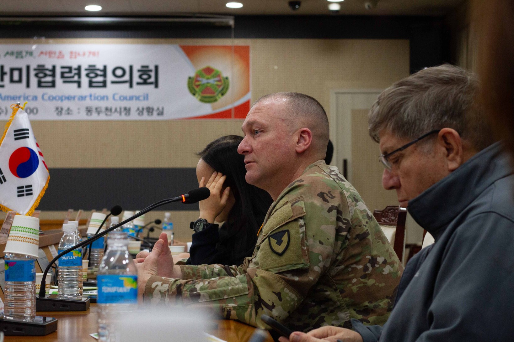 South Korea - Dongducheon City Mayor Park Hyeon-deok and United States Army Garrison (USAG) Yongsan-Casey Commander Col. Lloyd Brown co-chaired the second Korean-American Cooperation Council hosted at Dongducheon City Hall, Dec. 6. The goal of the Dongducheon/USAG Yongsan-Casey council is to promote cultural exchanges, cooperation and generate mutual understanding between both communities, together with the U.S. Forces Korea and 8th Army guidance to help strengthen partnerships. (U.S. Army photo by Pfc. Pomare Te'o)