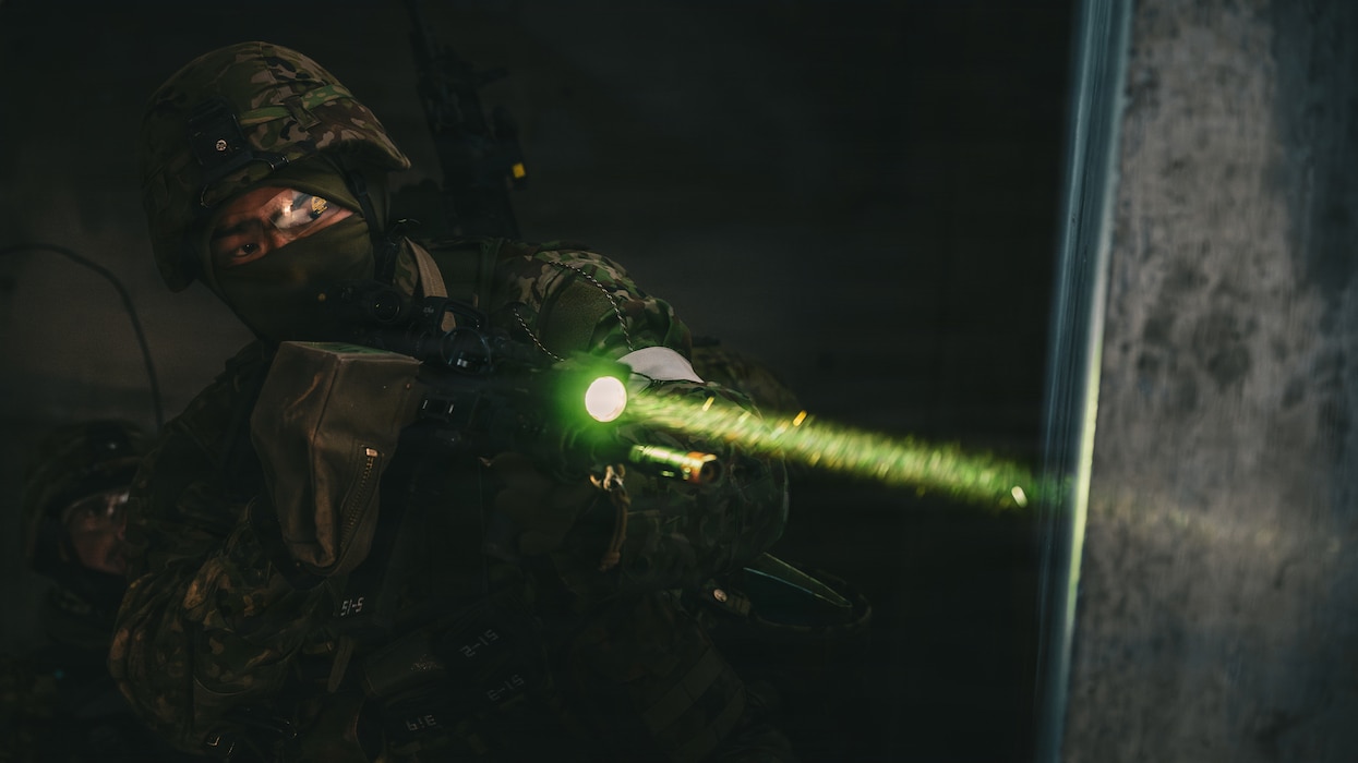 U.S. Army Soldiers and a Royal Air Force MQ-9 pilot discuss simulator functions during Virtual Flag: Coalition at the 705th Combat Training Squadron, also known as the Distributed Mission Operations Center, at Kirtland Air Force Base, New Mexico, Oct. 23 – Nov. 3, 2023. Exercise VF:C serves as a train as you fight exercise by integrating the full spectrum of air, land, surface, space, and cyber warfighters in a virtual battlespace in joint and coalition environments; forces from the United States, United Kingdom, Australia, and Canada participated. (Security badges “whited out” and screens were blurred for security reasons) (U.S. Air Force photo by Ms. Deb Henley)