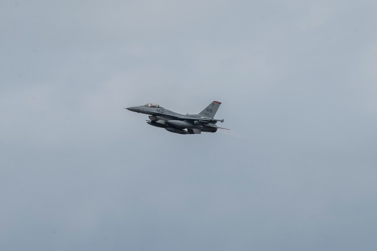 U.S. Air Force F-16 Fighting Falcon takes off in support of Exercise Cope North 24 at Misawa Air Base, Japan, Feb. 2, 2024. This year's iteration included service members from the U.S., Australia, Canada, France, South Korea and Japan. (U.S. Air Force photo by Airman 1st Class Koby Mitchell)