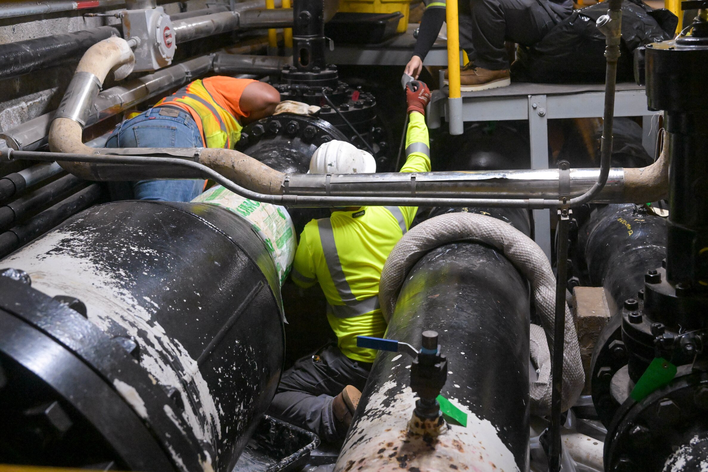 Personnel in support of Joint Task Force-Red Hill (JTF-RH) set up spill containment before defueling residual fuel at the Underground Pump House located on Joint Base Pearl Harbor-Hickam (JBPHH), Hawaii, March 4, 2024, where personnel are preparing to disconnect the Red Hill Bulk Fuel Storage Facility (RHBFSF) from the Underground Pump House. JTF-RH is now in Defueling Phase 5.B where personnel are focused on removing residual fuel and transitioning with the Navy Closure Task Force - Red Hill (NCTF-RH). The transition will focus on NCTF-RH learning JTF-RH’s processes and procedures for safety, security, and engagement to ensure continuity of operations. During this phase, JTF-RH retains command and control over the RHBFSF Joint Operational Area (JOA) and will synchronize actions to rebuild trust with Federal, State and local stakeholders. (DoD photo by U.S. Army Sgt. ZaBarr Jones)