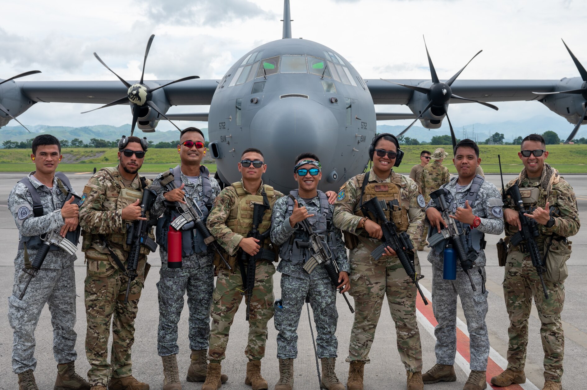 U.S. Air Force Airmen, assigned to Davis-Monthan Air Force Base, Arizona, along with Philippine Air Force members pose for a group photo during Cope Thunder 23-2 at General Santos International Airport, Philippines, July 11, 2023. Cope Thunder 23-2 provided a unique opportunity for the service members to train together, increasing the U.S.’ and the Philippines’ ability to work together. (U.S. Air Force photo by Senior Airman Vaughn Weber)