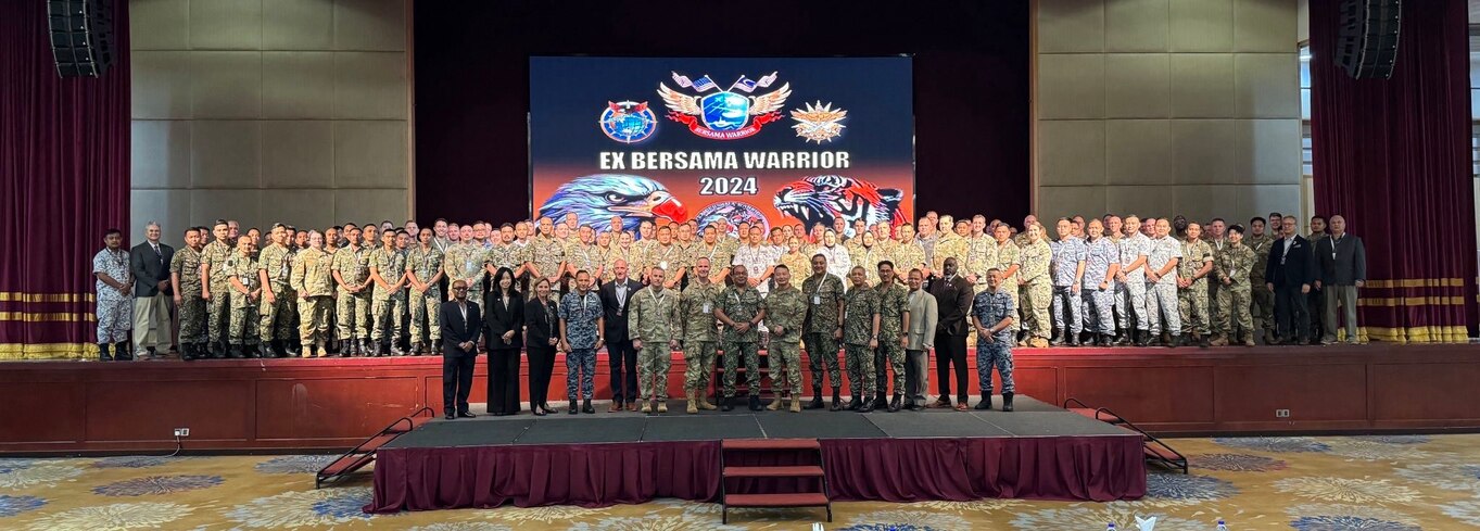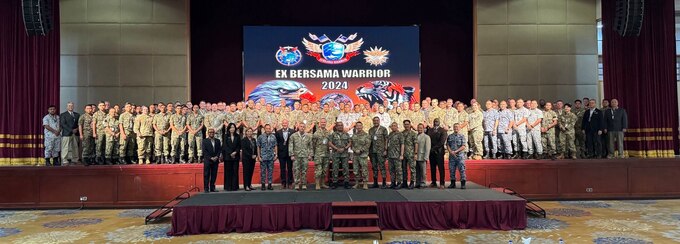 Washington National Guard and Malaysian Armed Forces members participate in the Bersama Warrior 2024 opening ceremonies June 1, 2024, at Kuala Lumpur, Malaysia. The Washington Guard and Malaysia have been partners under the State Partnership Program since 2017.