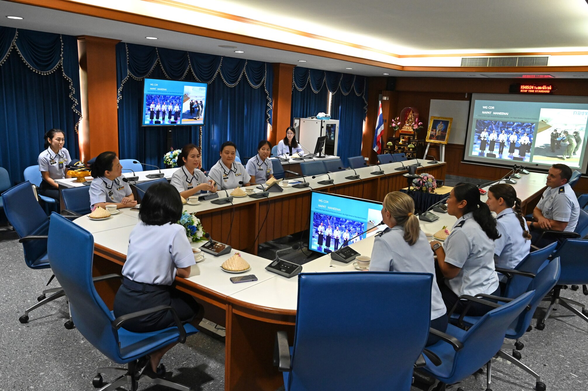 Members of the Washington Air National Guard exchange ideas with their Royal Thai Air Force counterparts during a professional development exchange as part of a State Partnership Program visit in Bangkok, July, 30, 2024. During the visit, the two counterparts discussed career development and opportunities. The United States has had diplomatic relations with the Kingdom of Thailand for over 190 years. Through engagements such as this, we work together to promote long-term mutual trust, understanding, respect, interoperability, and a common commitment to a free and open Indo-Pacific. (U.S. Air National Guard Photo by Master Sergeant Brandy Burke)