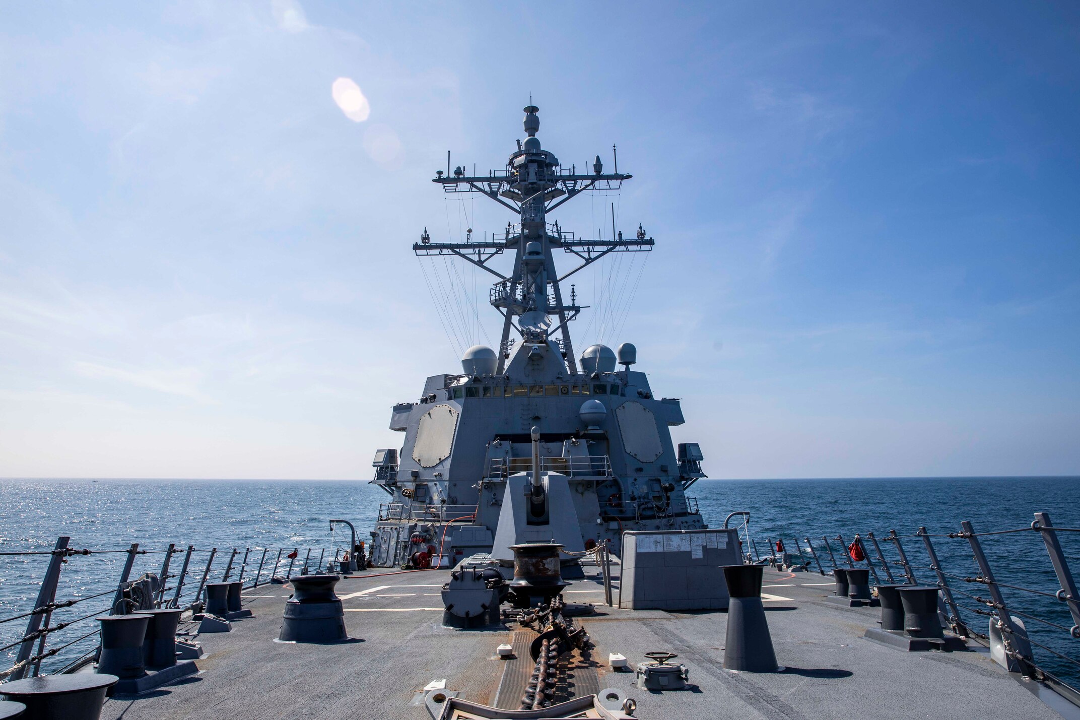 240822-N-NF288-1093 TAIWAN STRAIT (Aug. 22, 2024) The Arleigh Burke-class guided-missile destroyer USS Ralph Johnson (DDG 114) conducts routine underway operations. Ralph Johnson is forward-deployed to the U.S. 7th Fleet area of operations in support of a free and open Indo-Pacific. (U.S. Navy photo by Mass Communication Specialist 1st Class Jamaal Liddell)