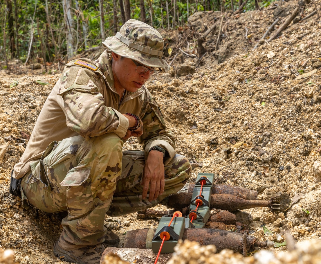 MUNDA, Solomon Islands – U.S. Army and Marine Corps Explosive Ordnance Disposal technicians joined together with bomb squad members from other nations to confront and defeat World War II era unexploded ordnance across the Solomon Islands.