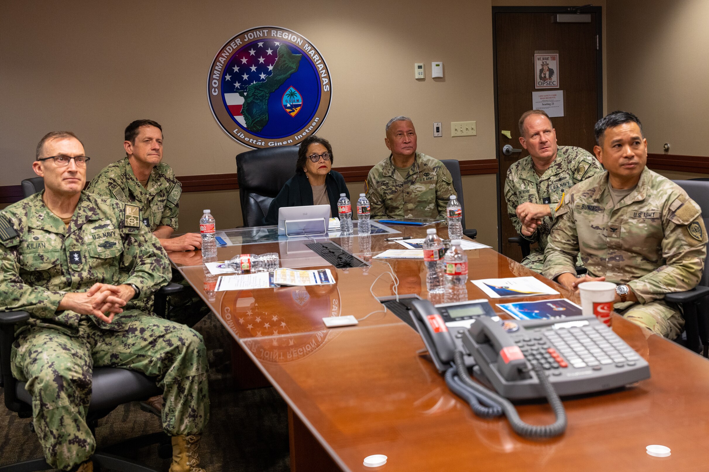 ASAN, Guam (Dec. 10, 2024) - The Honorable Lou Leon Guerrero, governor of Guam, and senior military leaders on Guam track a Standard Missile-3 Block IIA as it intercepts a surrogate Medium Range Ballistic Missile target off the coast of Guam during the Missile Defense Agency’s Flight Experiment Mission-02 (FEM-02), from the Joint Region Marianas Regional Operations Center, Dec. 10. Held concurrently, U.S. Indo-Pacific Command’s capabilities exercise Sling Stone leveraged FEM-02 to validate the Guam Defense System concept of operations. Sling Stone brought together assets and personnel from the Air Force, Army, Navy, and allied forces to use FEM-02 for multi-domain operations training. (U.S. Navy photo by William Busby III)