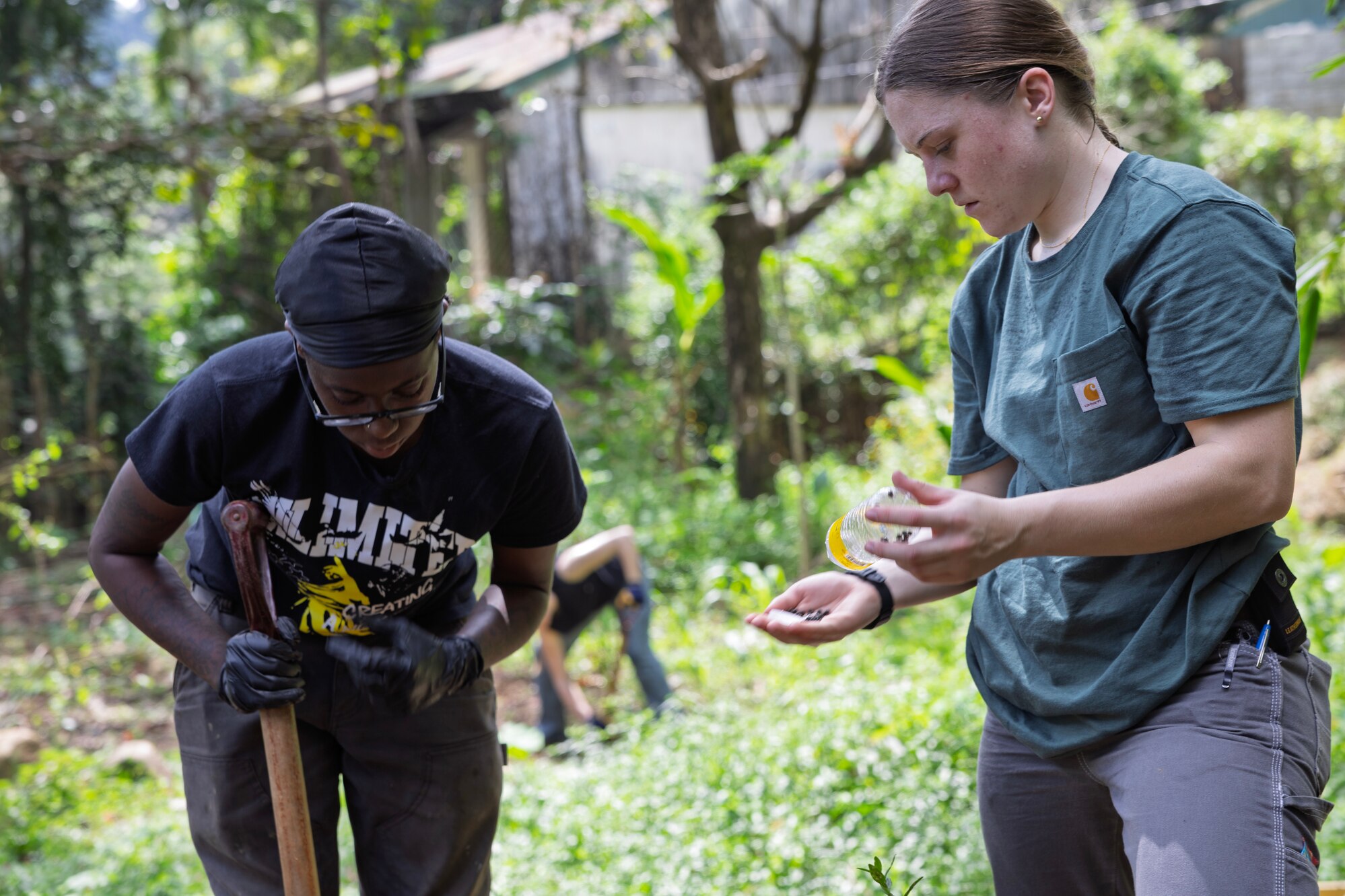 SUBIC, Philippines (Dec. 4, 2024) —Civilian mariner Azhatia McFarland, left, ordinary seaman, and deck cadet Alexa Tipps, both with Military Sealift Command’s (MSC) dry cargo and ammunition ship USNS Charles Drew (T-AKE 10), prepare to plant seeds in a vegetable garden at Aningway-Sacatihan Elementary School Annex/High School during a community outreach event at Subic, Philippines, Dec. 4, 2024. The Aeta are indigenous people who live in scattered, isolated mountainous parts of Luzon, Philippines. MSC Far East supports the U.S. 7th Fleet and ensures approximately 50 ships in the Indo-Pacific Region are manned, trained, and equipped to deliver essential supplies, fuel, cargo, and equipment to warfighters, both at sea and on shore. (U.S. Navy photo by Grady T. Fontana)