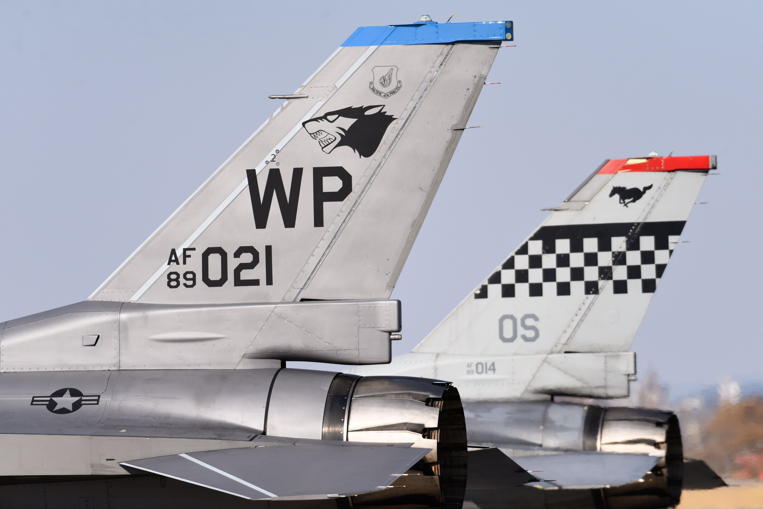Two U.S. Air Force F-16 Fighting Falcons assigned to the 36th Fighter Squadron and participating in Seventh Air Force’s Super Squadron test park next to each other on the flightline at Osan Air Base, Republic of Korea, March 19, 2025. Seventh Air Force will establish a second Super Squadron at Osan as part of Phase II for the test in October 2025 (U.S. Air Force photo by Staff Sgt. Dustin Braaten).