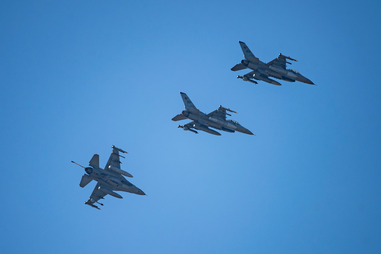 U.S. Air Force F-16 Fighting Falcons assigned to the 35th Fighter Squadron break formation during Freedom Flag 25-2 at Kunsan Air Base, Republic of Korea, Nov. 4, 2025. FF 25-2 is a routine, regularly scheduled training event designed to prepare joint and combined forces for combat to defend the Republic of Korea. (U.S. Air Force photo by Senior Airman Patrick Boyle)