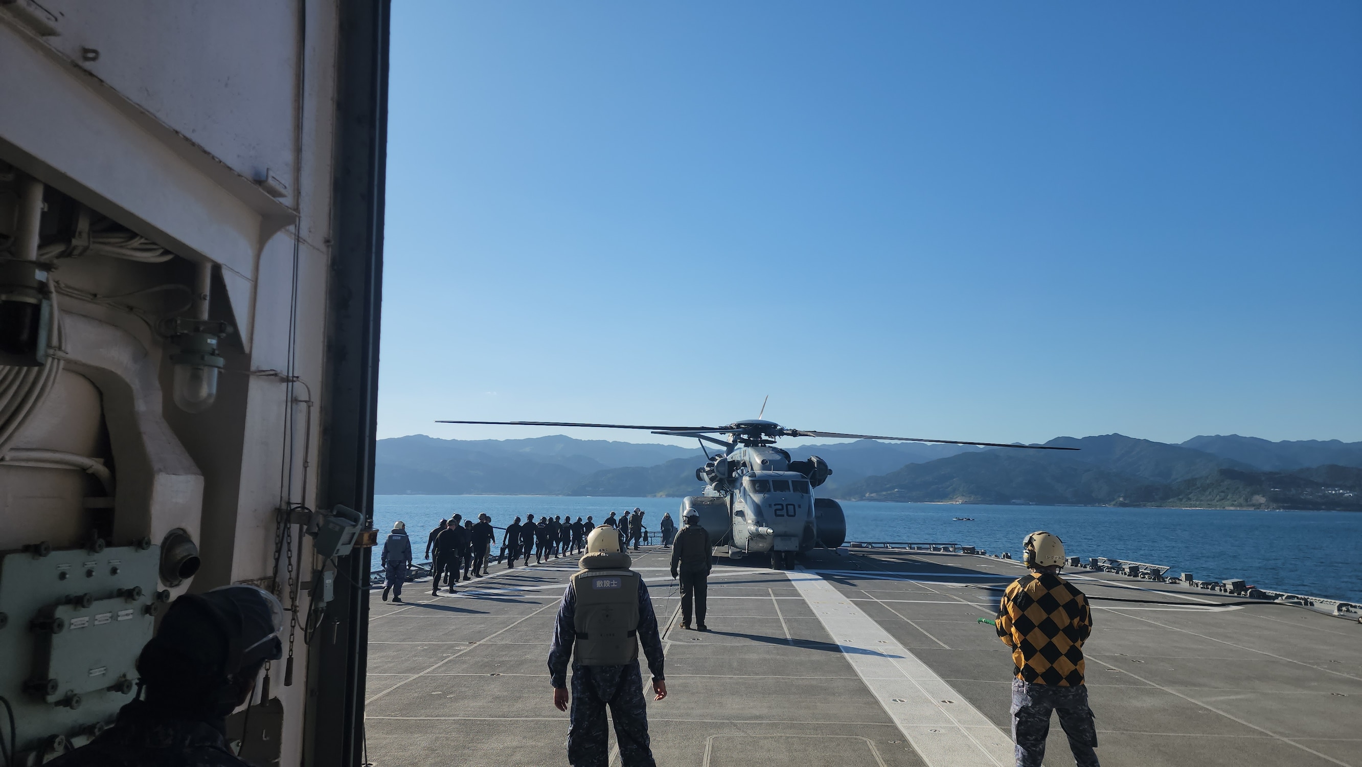 ABURATSU, Japan (Nov. 22, 2025) Explosive Ordnance Disposal Mobile Unit (EODMU) 5 Expeditionary Mine Countermeasures (ExMCM) Company 9-3 and Japan Maritime Self-Defense Force (JMSDF) EOD teams board an MH-53E Sea Dragon from Helicopter Mine countermeasures squadron 15 (HM-15) to conduct helicopter casting training during Mine Warfare Exercise (MINEX) 3JA near Aburatsu, Japan, Nov. 22, 2025. MINEX 3JA is part of a year-long series of bilateral exercise between the U.S. Navy and Japan Maritime Self-Defense Force to strengthen interoperability and increase proficiency in mine countermeasure operations. (U.S. Navy photo by Lt. Matthew Cox).
