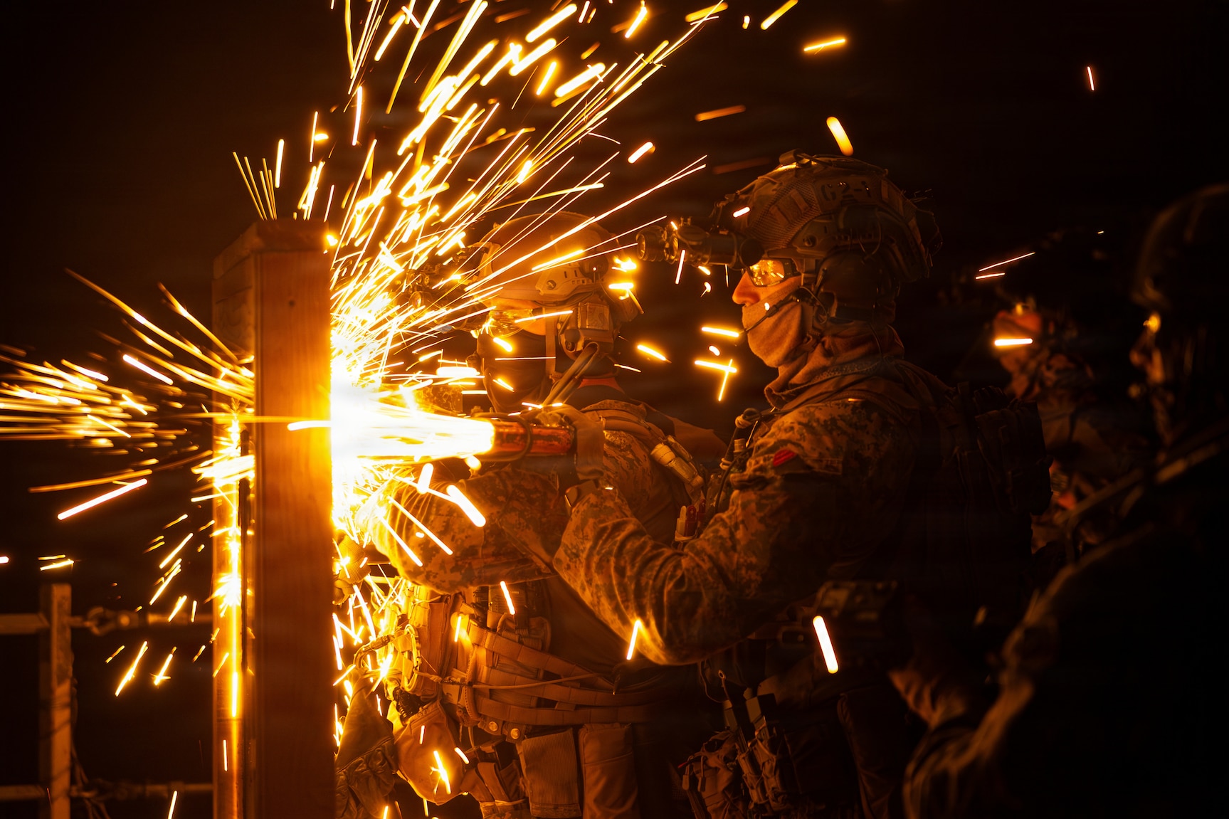 PHILIPPINE SEA (Feb.6, 2026) — U.S. Marines with Maritime Raid Force, 31st Marine Expeditionary Unit, breach a simulated point of entry during a visit, board, search and seizure (VBSS) operation aboard the landing dock transport ship, USS San Diego (LPD 22) in the Philippine Sea, Feb. 6, 2026. VBSS is part of maritime interception operations that aim to delay, disrupt, or seize vessels of interest in the maritime domain. The 31st MEU is a persistent, combat credible force operating aboard the ships of the Tripoli Amphibious Ready Group in the U.S. 7th Fleet area of operations, routinely interacting and operating with our allies and partners to contribute to deterrence, security, crisis response and combat operations in the Indo-Pacific region. (U.S. Marine Corps photo by Cpl. Maksim Masloboev)